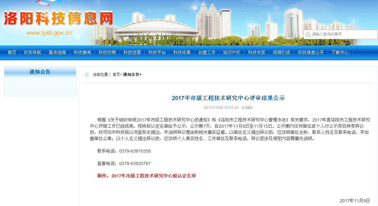 我司通過(guò)2017年洛陽(yáng)市工程技術(shù)研究中心評(píng)審
